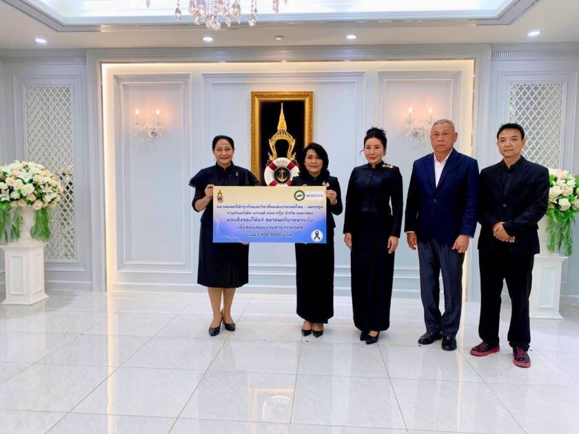 สมาคมสตรีนักธุรกิจและวิชาชีพแห่งประเทศไทย-นครปฐม ร่วมกับบริษัท แกรนด์ คอส กรุ๊ป จำกัด (มหาชน) ภายใต้ แบรนด์ MERREZ’CA สนับสนุนผลิตภัณฑ์เครื่องสำอางเข้าร้านกาชาดสมาคมภริยาทหารเรือ มูลค่า 100,000 บาท