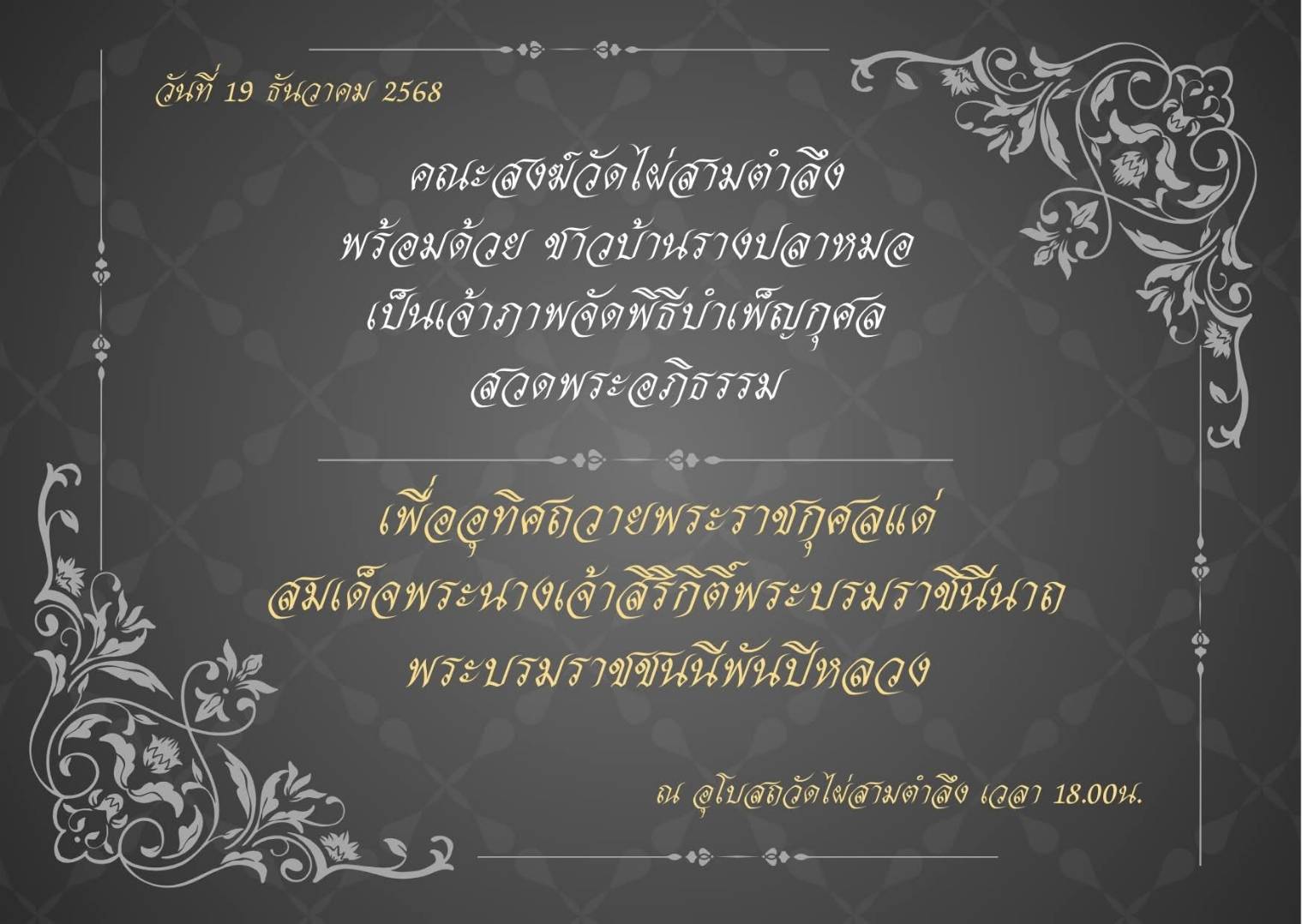 Read More“คณะสงฆ์วัดไผ่สามตำลึง ร่วมกับชาวบ้านรางปลาหมอร่วมเป็นเจ้าภาพบำเพ็ญกุศลสวดพระอภิธรรม ถวายพระราชกุศลแด่สมเด็จพระพันปีหลวง “