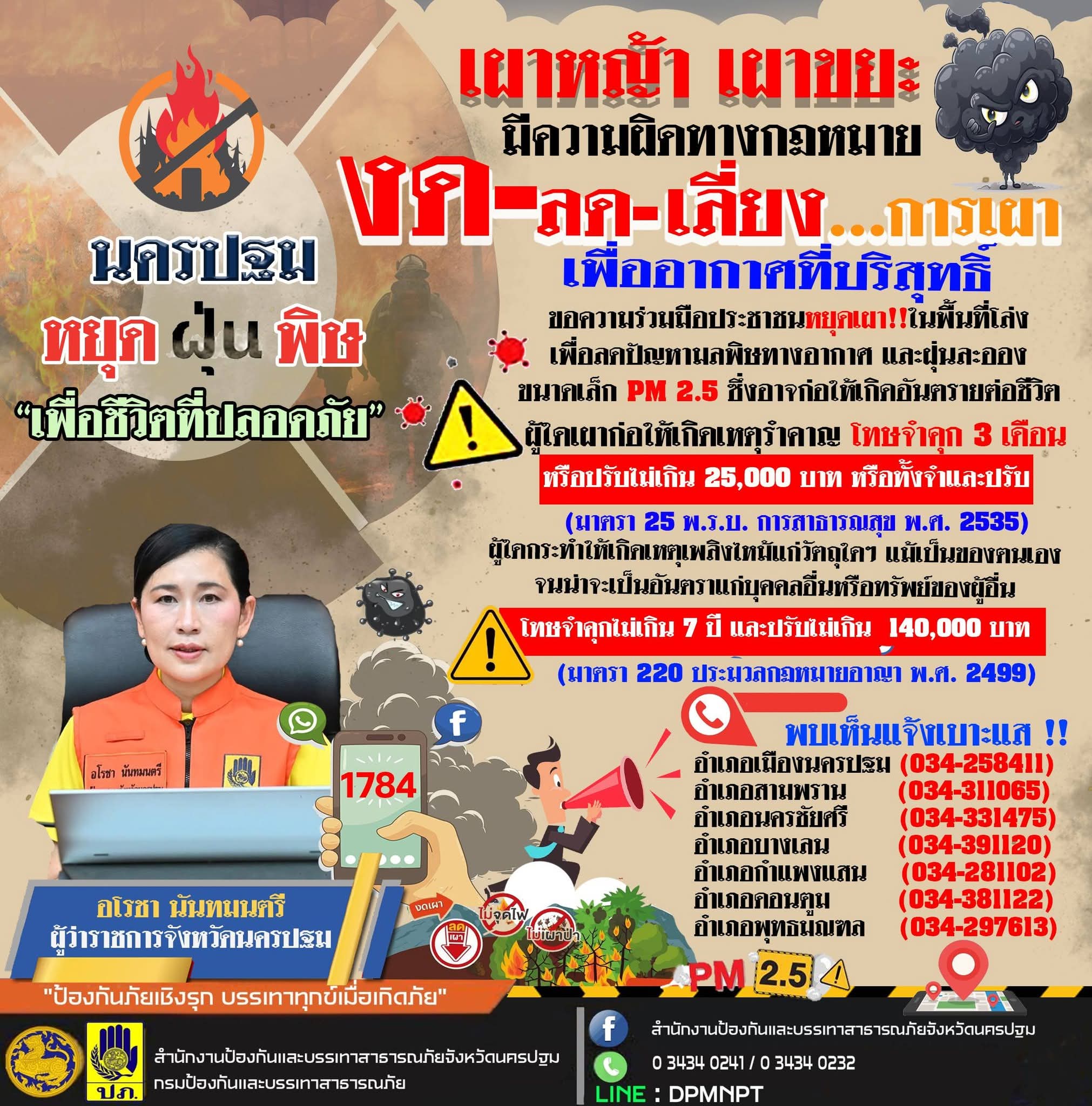 Read Moreแจ้งประชาสัมพันธ์สถานการณ์ ฝุ่น PM.2.5 จากศูนย์บัญชาการเหตุการณ์จังหวัดนครปฐม (การป้องกันและแก้ไขปัญหาฝุ่นละอองขนาดเล็ก PM.2.5)