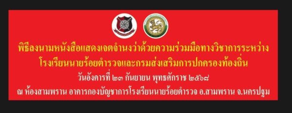 วันนี้ 23 กันยายน 2568 เวลา 10:00 น. ณ ห้องสามพราน อาคารกองบัญชาการโรงเรียนนายร้อยตำรวจ อ.สามพราน จ.นครปฐม มีพิธีลงนามหนังสือแสดงเจตจำนงว่าด้วยความร่วมมือทางวิชาการระหว่าง โรงเรียนนายร้อยตำรวจและกรมส่งเสริมการปกครองท้องถิ่น