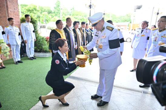 โดยมีรองผู้ว่าราชการจังหวัดนครปฐม ผู้พิพากษาหัวหน้าศาลจังหวัดนครปฐม รองผู้บัญชาการมณฑลทหารบกที่ 11 รองผู้บังคับการตำรวจภูธรจังหวัดนครปฐม รองนายกเหล่ากาชาดจังหวัดนครปฐม นายกสภาและอธิการบดี มหาวิทยาลัยราชภัฏเทพสตรี มหาวิทยาลัยราชภัฏธนบุรี มหาวิทยาลัยราชภัฏราชนครินทร์ และมหาวิทยาลัยราชภัฏเพชรบุรี ข้าราชการ เจ้าหน้าที่ และนักศึกษา ให้การต้อนรับ