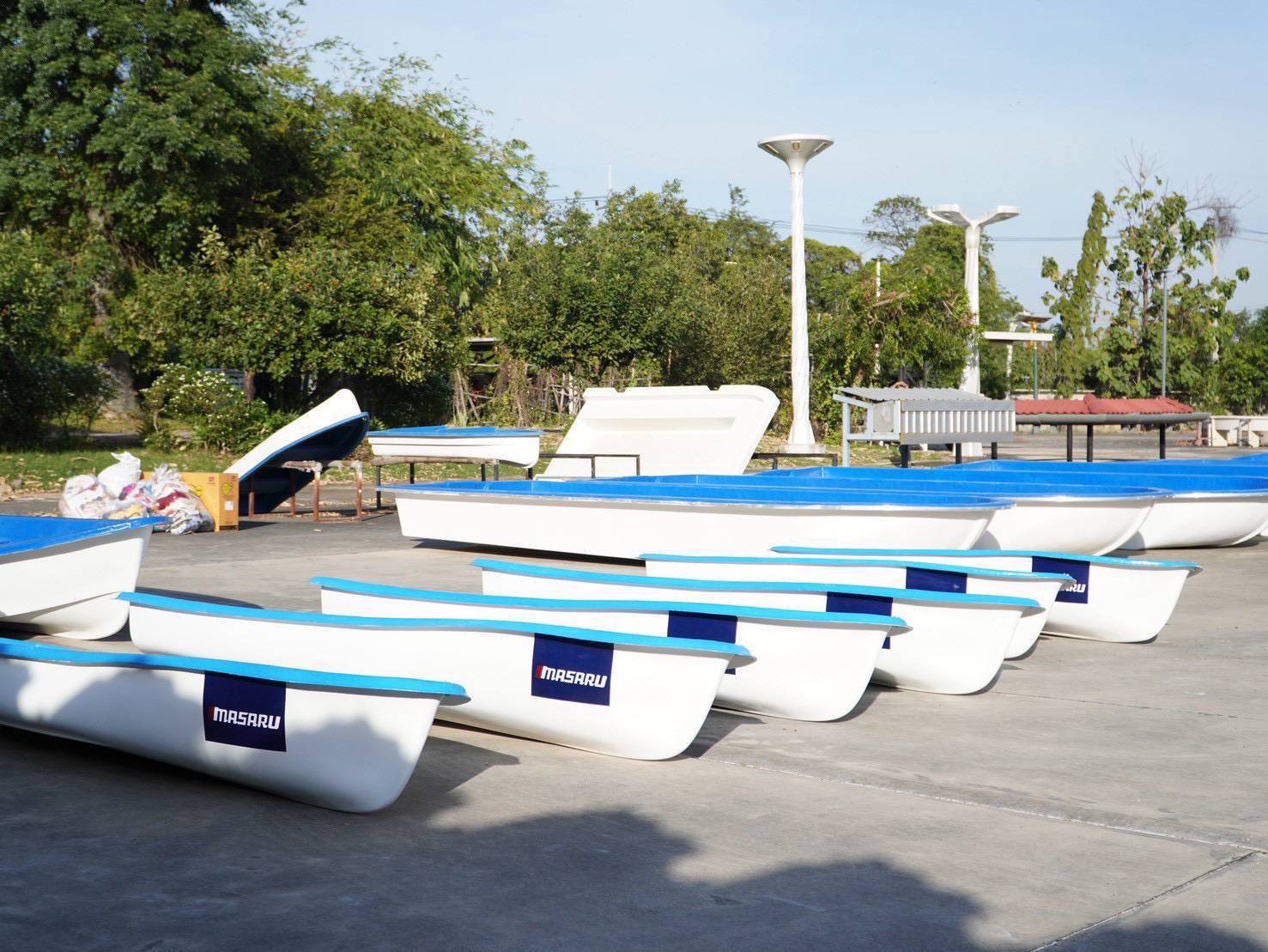 สำหรับเรือไฟเบอร์กลาส พร้อมอุปกรณ์ที่ส่งมอบไปยัง พัน.ร.8 ค่ายกรมหลวงสงขลานครินทร์ ศูนย์การนาวิกโยธิน กองทัพเรือ แล้วนั้น ได้แก่ เรือ 13 ฟุต 7 ลำ เรือ 10 ฟุต 4 ลำ เรือ 8 ฟุต 1 ลำ พร้อมเครื่องฮอนด้า หางยาว 13 แรง 1 เครื่อง เครื่องคาวาม่า หางยาว 13 แรง 2 เครื่อง ไม้พาย 22 อัน และชูชีพ 120 ตัว