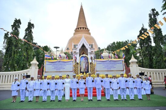 วันที่ 5 ธันวาคม 2568 ที่ศาลากองอำนวยการ องค์พระปฐมเจดีย์ อำเภอเมือง จังหวัดนครปฐม นางสาวอโรชา นันทมนตรี ผู้ว่าราชการจังหวัดนครปฐม เป็นประธานพิธีวางพานพุ่มดอกไม้ถวายบังคม เบื้องหน้าพระบรมฉายาลักษณ์ พระบาทสมเด็จพระบรมชนกาธิเบศร มหาภูมิพลอดุลยเดชมหาราช บรมนาถบพิตร เนื่องในวันคล้ายวันพระบรมราชสมภพ วันชาติ และวันพ่อแห่งชาติ 5 ธันวาคม 2568 โดยมีรองผู้ว่าราชการจังหวัด รองนายกเหล่ากาชาดจังหวัด หัวหน้าส่วนราชการ ข้าราชการ ทหาร ตำรวจ และประชาชนชาวจังหวัดนครปฐม ร่วมพิธีเป็นจำนวนมาก