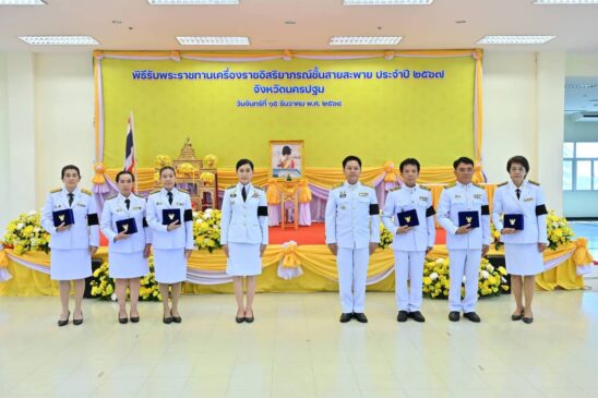 นครปฐม จัดพิธีรับพระราชทานเครื่องราชอิสริยาภรณ์ชั้นสายสะพาย ประจำปี 2567 แก่ข้าราชการในสังกัดระทรวงมหาดไทย สังกัดกระทรวงสาธารณสุข สังกัดกระทรวงศึกษาธิการ รวมทั้งสิ้น 76 ราย