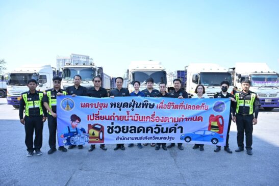 จากปัญหาการเกิดฝุ่นละอองขนาดเล็ก หรือ PM2.5 สาเหตุหนึ่งมาจากรถบรรทุก จังหวัดนครปฐมได้มอบหมายให้สำนักงานขนส่งจังหวัด ดำเนินการตรวจควันดำอย่างต่อเนื่อง พร้อมแนะนำให้สถานประกอบการกำชับพนักงานขับรถให้เตรียมความพร้อมให้มีความรอบคอบระมัดระวังในขับขี่ และดำเนินการปรับปรุงแก้ไขเครื่องยนต์ให้เป็นไปตามเงื่อนไขของกรมการขนส่งทางบก ลดการบรรทุกขนส่งในช่วงเทศกาลปีใหม่ 2569 ที่จะถึงนี้ ตลอดจนส่งเสริมการใช้น้ำมันดีเซล B20 เพื่อลดปริมาณการปล่อยมลภาวะทางอากาศ