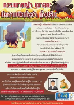 -รณรงค์ งด-ลด-เลี่ยง การเผาทุกชนิด และประชาสัมพันธ์สร้างการรับรู้ แจ้งเตือนโทษตามข้อบังคับทางกฎหมาย ในภาคการเกษตร