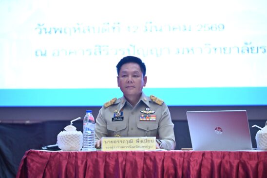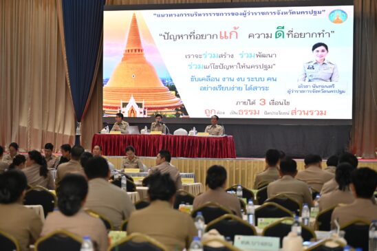 วันที่ 12 มีนาคม 2569 ที่อาคารสิริวรปัญญา มหาวิทยาลัยราชภัฏนครปฐม นางสาวอโรชา นันทมนตรี ผู้ว่าราชการจังหวัดนครปฐม เป็นประธานในการประชุมผู้บริหารองค์กรปกครองส่วนท้องถิ่นจังหวัดนครปฐม เพื่อมอบนโยบายและวางแนวทางการปฏิบัติราชการ เน้นย้ำการทำงานเชิงรุกและแก้ไขปัญหายาเสพติด โดยมี นายอรรถวุฒิ พึ่งเนียม และนายสมาวิษฎ์ สุพรรณไพ รองผู้ว่าราชการจังหวัด พร้อมด้วยหัวหน้าส่วนราชการที่เกี่ยวข้องเข้าร่วมประชุมอย่างพร้อมเพรียง