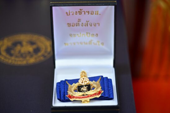 โอกาสนี้ นายพัฒนพงษ์ สร้อยอินทรากุล ปลัดจังหวัดนครปฐม กล่าวว่า เครื่องหมาย “รักษาดินแดนยิ่งชีพ” เป็นเครื่องหมายที่พระบาทสมเด็จพระบรมชนกาธิเบศร มหาภูมิพลอดุลยเดชมหาราช บรมนาถบพิตร ได้ทรงพระกรุณาโปรดเกล้าโปรดกระหม่อมพระราชทานพระบรมราชานุญาตให้กองบัญชาการกองอาสารักษาดินแดนอัญเชิญพระปรมาภิไธยย่อ ภ.ป.ร. ประดิษฐานบนเครื่องหมาย เพื่อมอบให้แก่ผู้บังคับบัญชา เจ้าหน้าที่กองอาสารักษาดินแดน และผู้ทรงคุณวุฒิ เพื่อเป็นเครื่องเตือนใจให้ตระหนักถึงภารกิจหน้าที่ในการรักษาดินแดนไว้ยิ่งกว่าชีวิต
